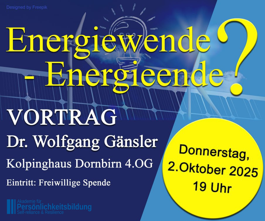 Vortrag von Dr. Wolfgang Gänsler, 2. Oktober 2025, Kolpinghaus Dornbirn 4. OG, Eintritt: Freiwillige Spende